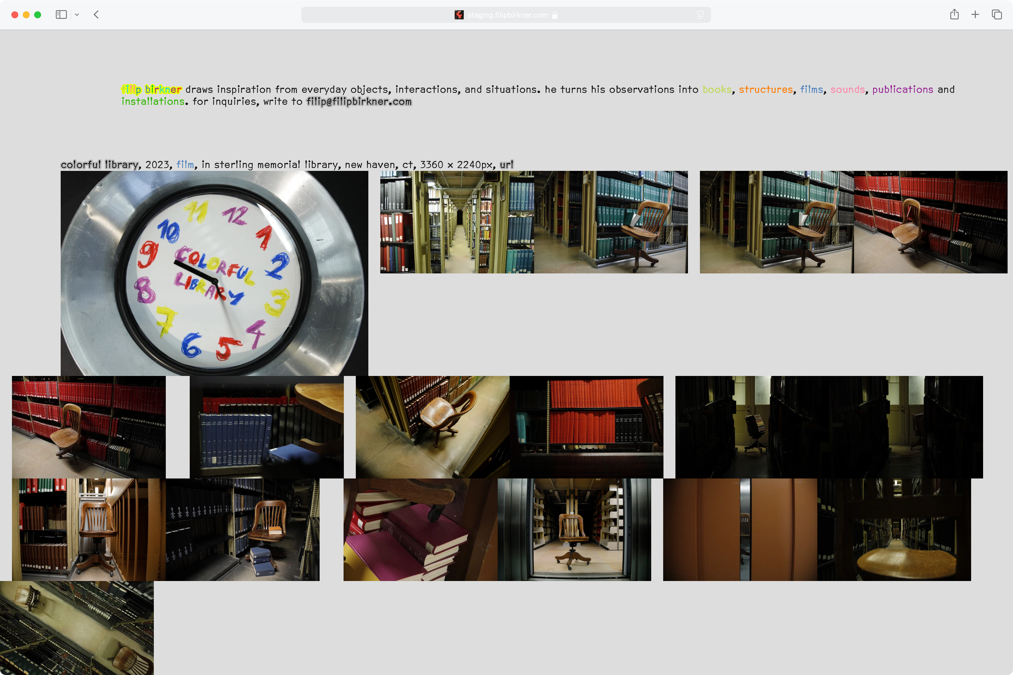 For my friend Filip Birkner, an artist and designer based in Brooklyn, I built a personal website. It uses his typeface 3200dpi uncoated—a digitization of Dual Gothic—and fancy color mixing for a tagging system that archives and categories his work.