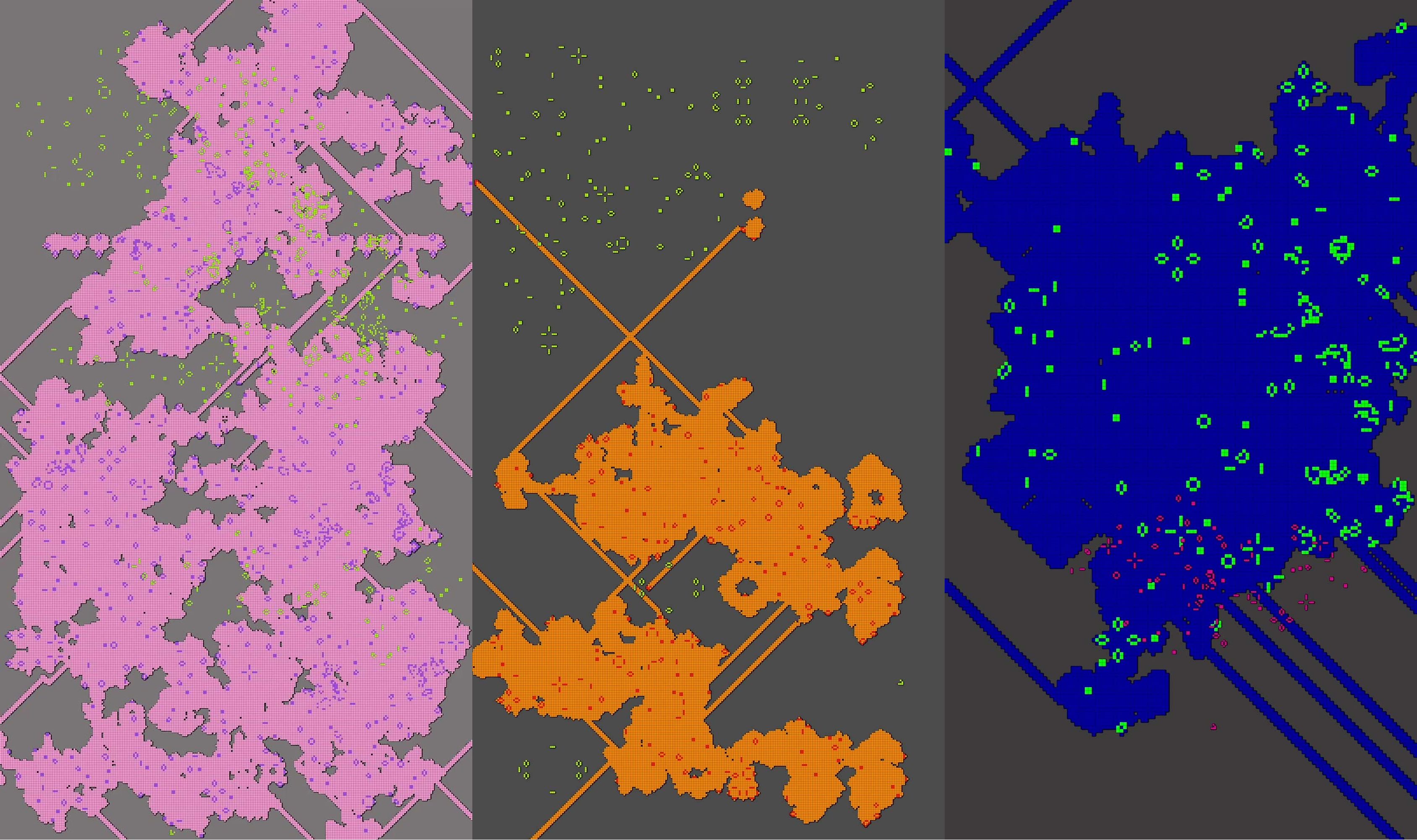 For Taeyoon Choi's lecture Lichenous Networks at the Yale School of Art, Jisung Park and I created a typographic video announcement that lived across three screens. The treatment of the typography was based on John Horton Conway's cellular automaton also known as Conway's Game of Life.